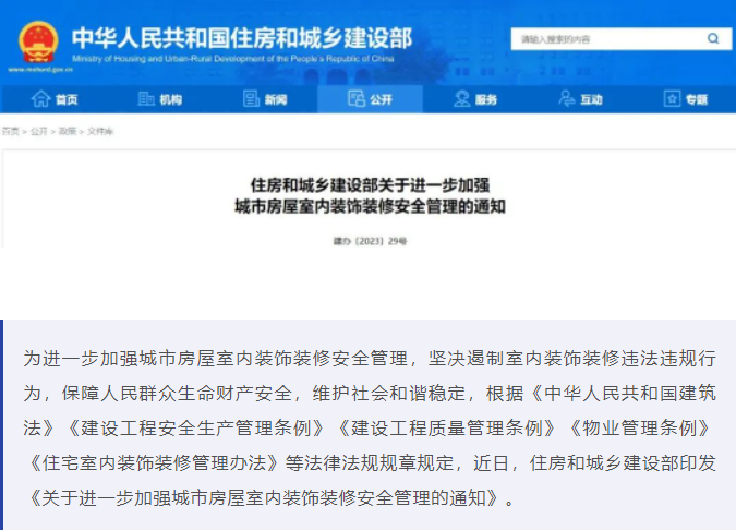 通知主要內(nèi)容如下:一、按照誰(shuí)所有誰(shuí)負(fù)責(zé)、誰(shuí)使用誰(shuí)負(fù)責(zé)的原則,城市房屋所有人、使用人(以下統(tǒng)稱裝修人)是房屋室內(nèi)裝飾裝修安全管理的第一責(zé)任人,實(shí)施房屋室內(nèi)裝飾裝修活動(dòng)應(yīng)當(dāng)嚴(yán)格遵守有關(guān)法律法規(guī)規(guī)...